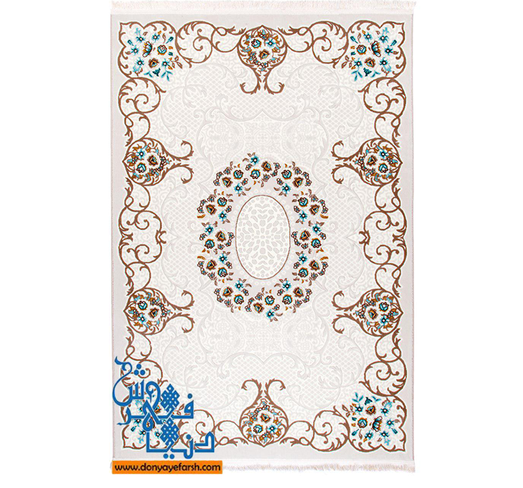 فرش ماشینی فانتزی گل برجسته فرش روز کد 112کرم- آبی